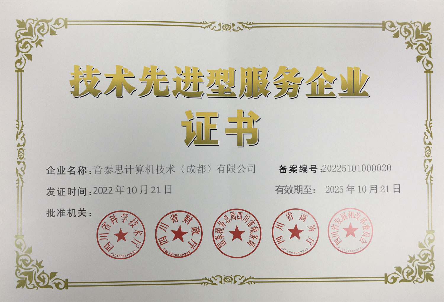 获技术先进型服务企业称号