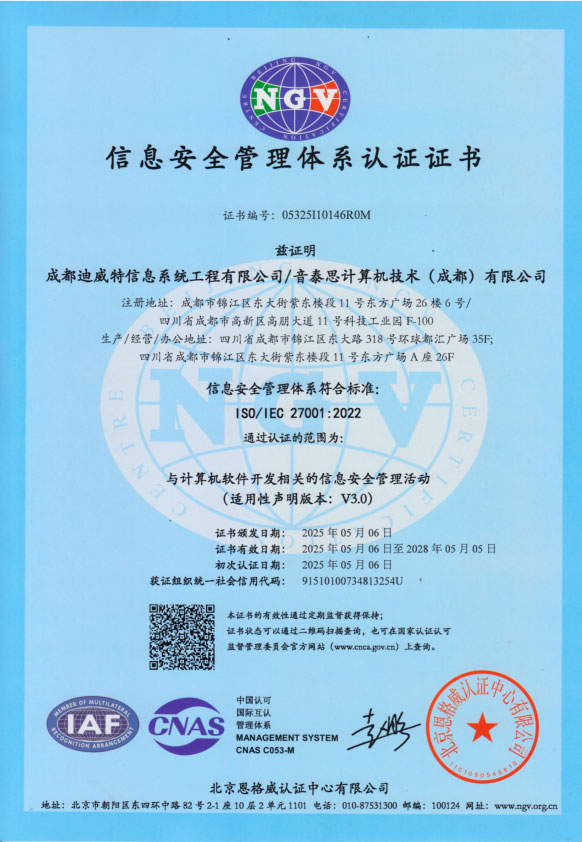 通过ISO27001国际信息安全管理体系认证