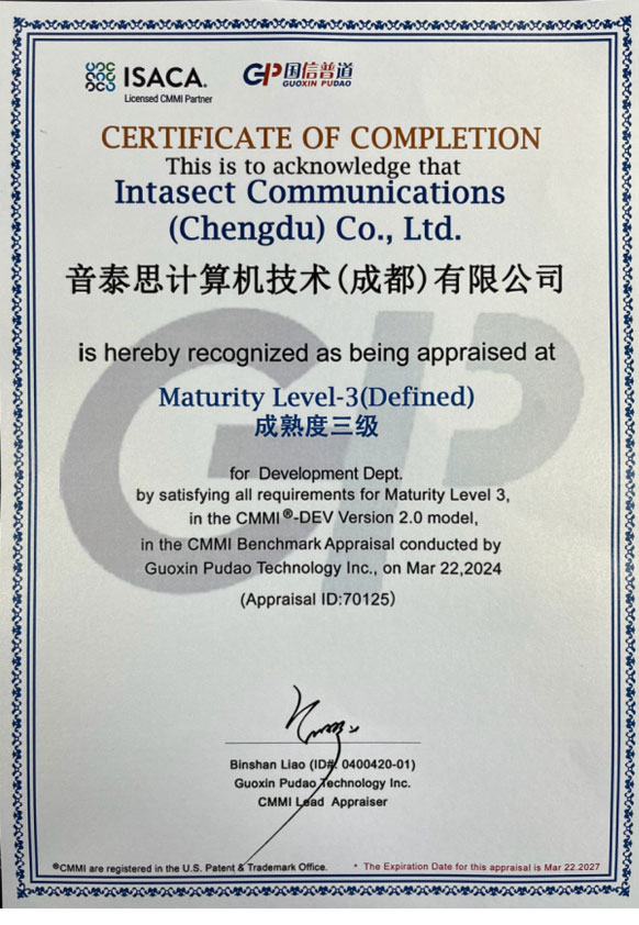 通过软件能力成熟度CMMI 3到期新审核并取得证书