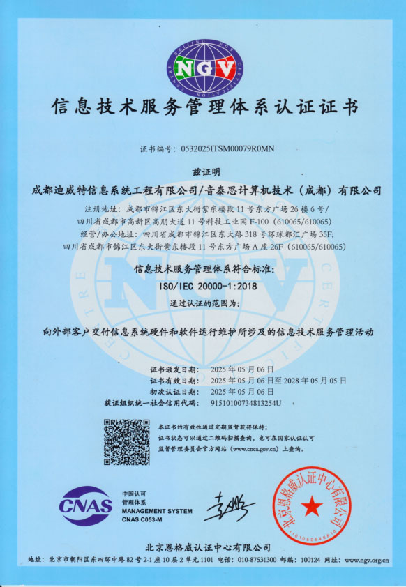 通过ISO20000信息技术服务管理体系认证